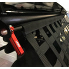 The engineers at JOES Racing Products have designed a Window Net Mounting Kit that not only looks cool, but is easy to install. The unique design quickly disassembles allowing a new window net to slide right on. The powder coated rods create a finished and professional look (no more rusty unpainted rods) and the handsome anodized aluminum handle is not only easy to use, but steps beyond the GM-seat-belt buckle of last year. An internal spring-loaded release allows for secure engagement, and effortless release.