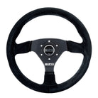 Sparco's most popular competition steering wheel, the Sparco 383 Competition Wheel offers a thick and comfortable suede leather grip and ergonomic bulges built into the rim. The compact shape is perfect for race use, while the traditional dish mates well with most set-ups. Horn button included.